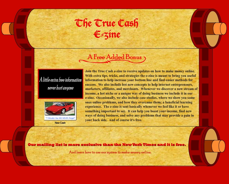Our eZine is a key to secret revenue sources. It’s all about sending you the most up to date info with in our sphere of influence. Sign-up and make some cash and get it on the low! Thanks for your time!